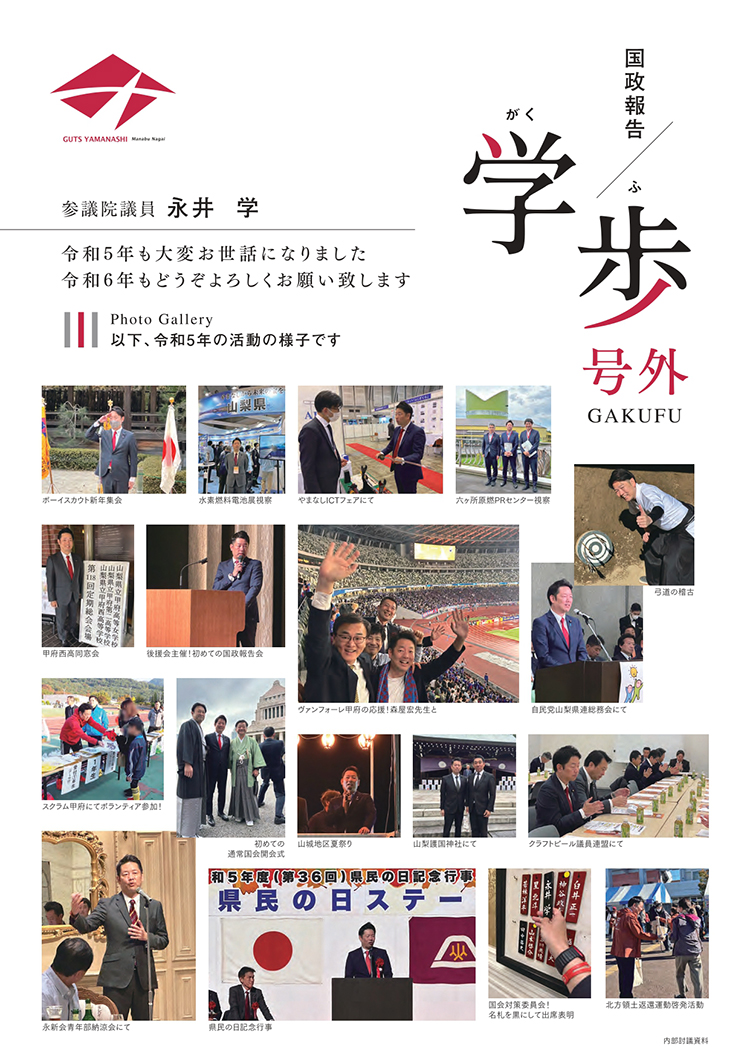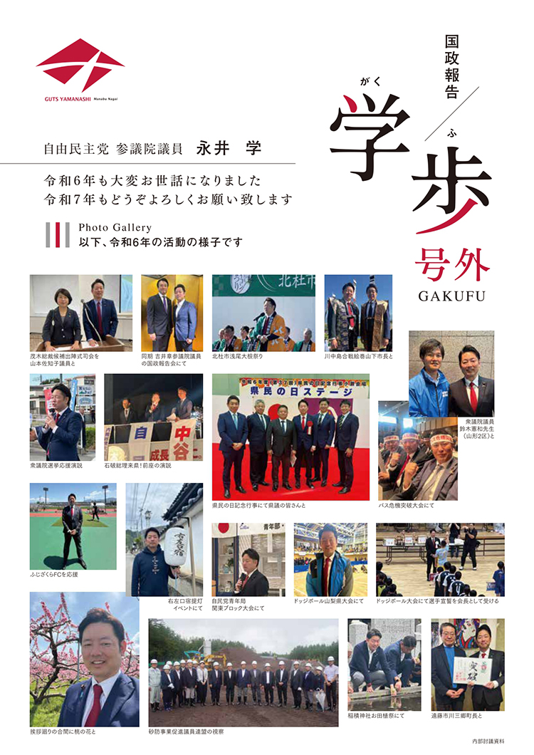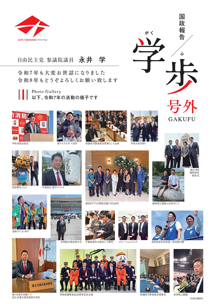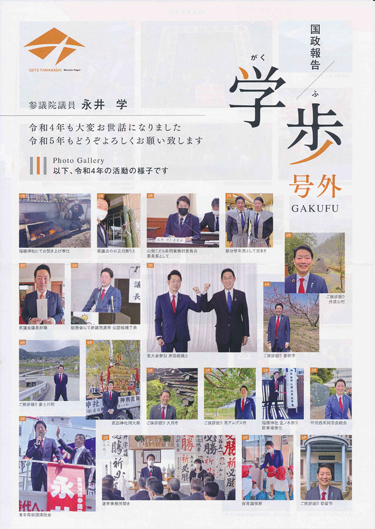 「学歩(がくふ)」は永井学の活動報告です。クリックするとPDFがご覧いただけます。